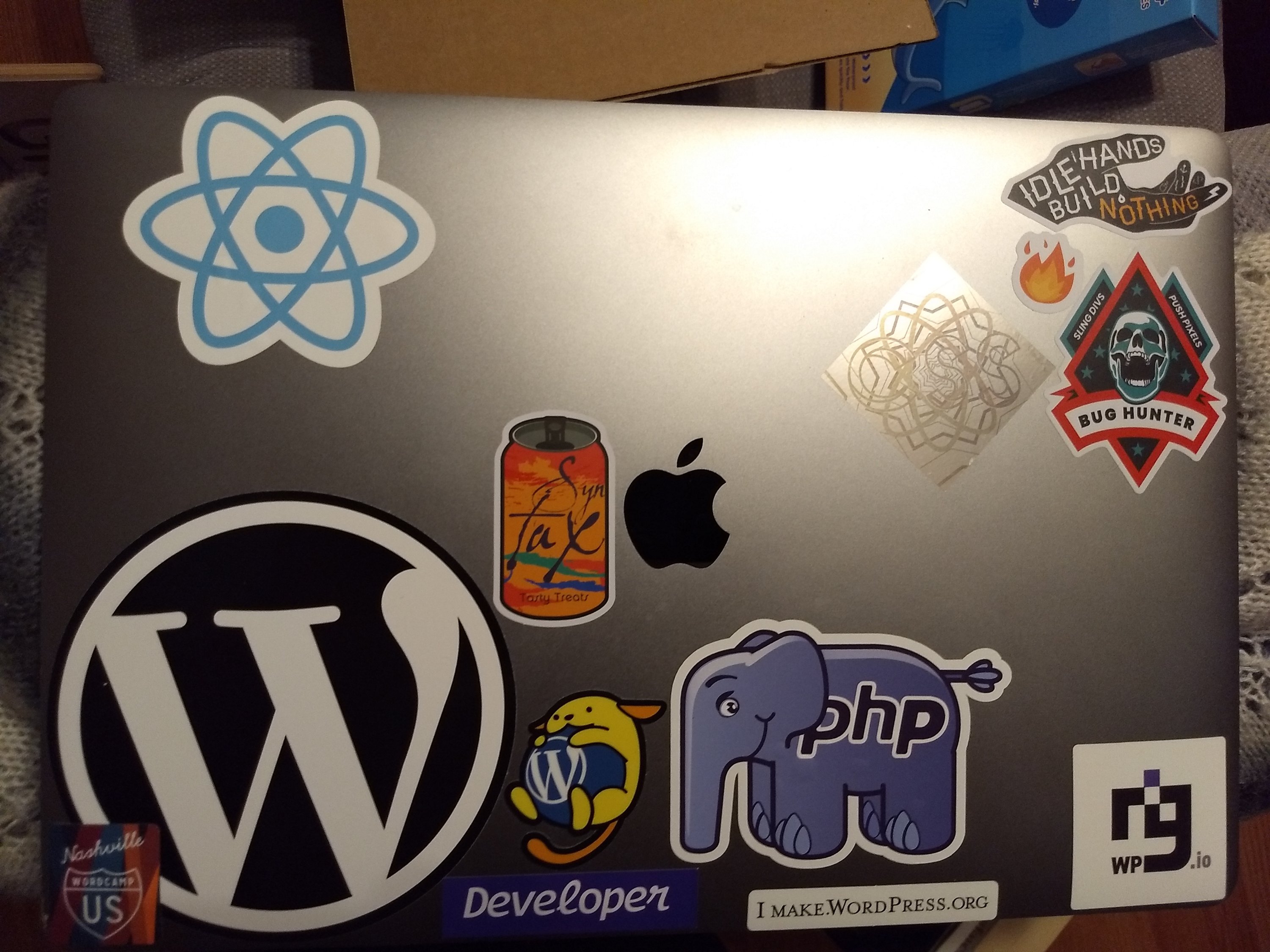 For Christmas my wife got me the kick-ass React and elePHPant stickers seen below.